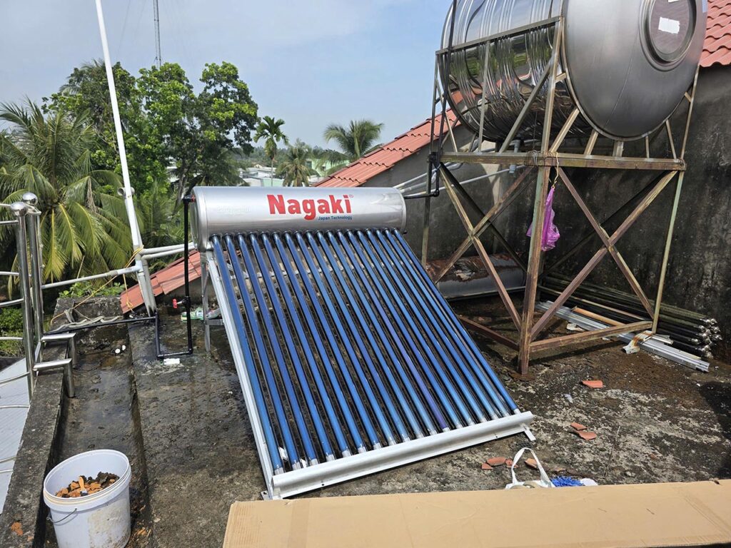 Máy nước nóng năng lượng mặt trời Nagaki 198L dùng thoải mái cho cả gia đình.
