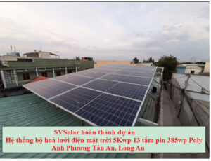 Hệ thống bộ hoà lưới điện mặt trời 5Kwp 13 tấm pin Canadian 385wp Mono...