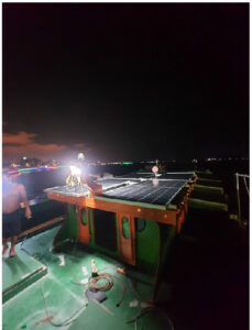 Salan của anh Tú vừa cặp bến ở bờ bè Mỹ tho. Nhân viên kỹ thuật SVSolar đón Anh. Để tiếp hành lắp đặt cho kịp chuyến đi đêm 🌠 khi Thành phố đã lên đèn🌠🌠🌠 .Sau thời gian tìm hiểu và lựa chọn Anh Tú đã chọn lắp hệ lưu trữ 3Kwp 4 tấm pin Canadian 450W. Những chuyến hàng cứ liên tục, không có nhiều thời gian salan Anh vừa cặp là nhân viên SVSolar cố gắn hoàn thành trong thời gian nhanh nhất cho Anh. Khi chọn hệ lưu trữ 3Kwp Anh Tú mong muốn có lượng tiêu thụ điện ổn định. Cung cấp nguồn điện sạch 24/24 cho thiết bị gia dụng: đèn, quạt, tivi, tủ đông, ….