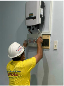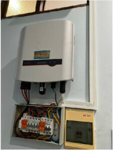 Trung bình ngày và đêm nhà anh cần sử dụng lượng điện tiêu thụ 24Kwh/ngày. Với lượng điện trên mới tháng Anh cần chi trả số tiền mỗi tháng là 2 triệu. Nhận thấy số tiền cần thanh toán khá lớn , Anh đã tìm hiểu là lắp hệ thống hoà lưới áp mái . Hệ thống sử dụng Inverter Sungrow có công tơi tự ngắt lưới không đẩy điện dư lên lưới vì nhà nước chưa có chính sách mua điện . Hệ 5Kwp với 12 tấm pin Canadian 450W mỗi ngày trung bình tạo ra 22-23Kwh mỗi ngày. Nếu nhà anh sử dụng nhiều hơn lượng điện tạo ra, thì điện lưới đưa vào thêm không ảnh hưởng đến sinh hoạt. Đối với hệ này lượng điện tạo ra chỉ được sử dụng ngày. Nếu lượng điện tạo ra trong ngày sử dụng còn sẽ tự ngắt lưới, năng lượng tạo ra, tải tiêu thụ không hết cũng không bị đẩy ngược lên lưới.