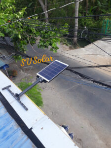 Một ngày đẹp trời ở Mỹ Tho. Sau khi theo dõi và tìm hiểu trên Website: SVSolar.vn, cũng như các phương tiện truyền thông. Nhận thấy nhiều mặt lợi của điện mặt trời nên khách đã chọn lắp hệ thống điện NLMT cho mình. Khách đã chọn lắp đặt hệ thống đèn pha 300W NLMT và đèn đường 400W NLMT cho nhà mình, với hệ thống mới giờ đây anh có thể sinh hoạt thuận tiện bất kể ngày hay đêm.