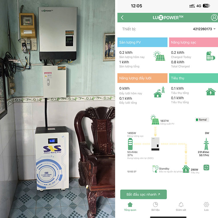 Nhờ sự kết hợp hoàn hảo này, hệ thống không chỉ cung cấp đủ điện cho sinh hoạt hằng ngày mà còn giúp gia đình anh Đầy yên tâm hơn trong những giờ cao điểm hay khi điện lưới bị gián đoạn.