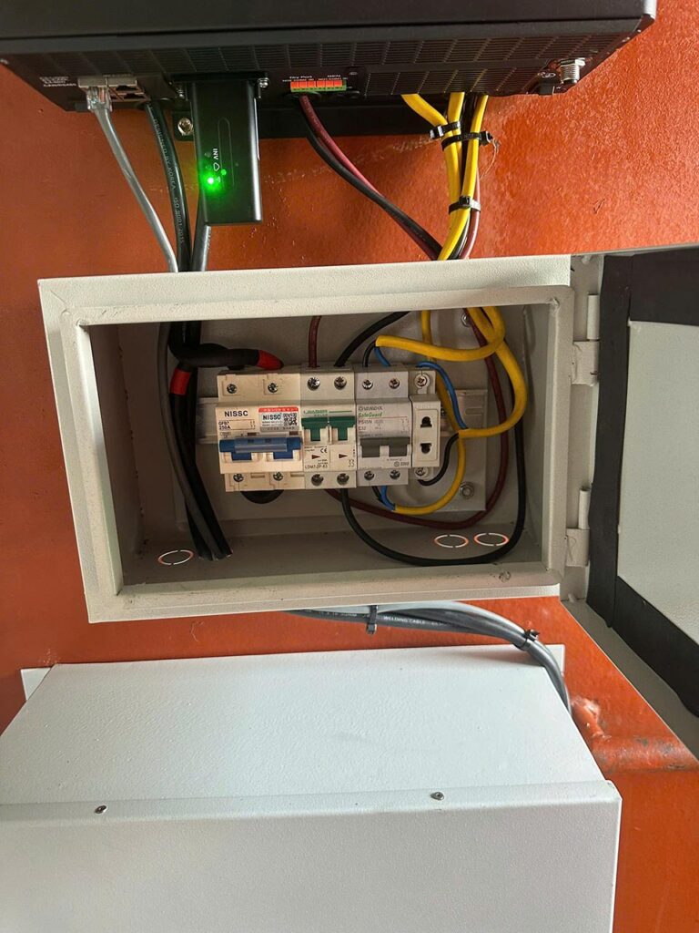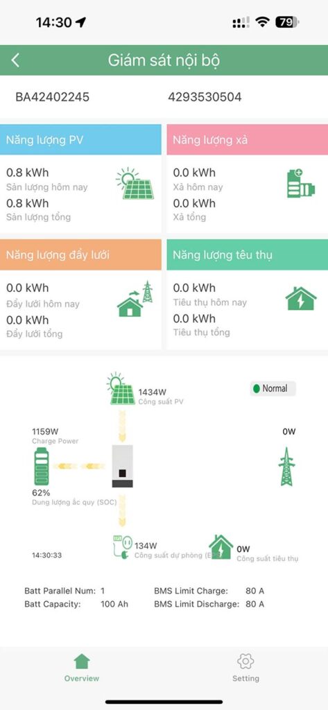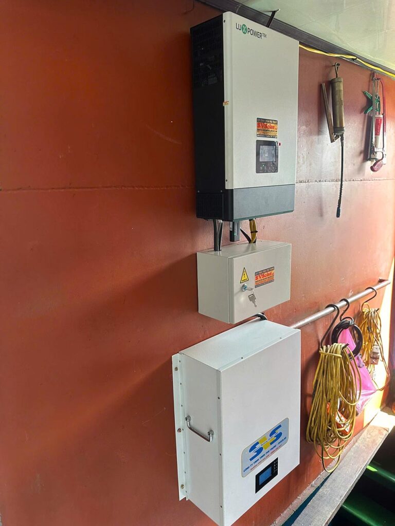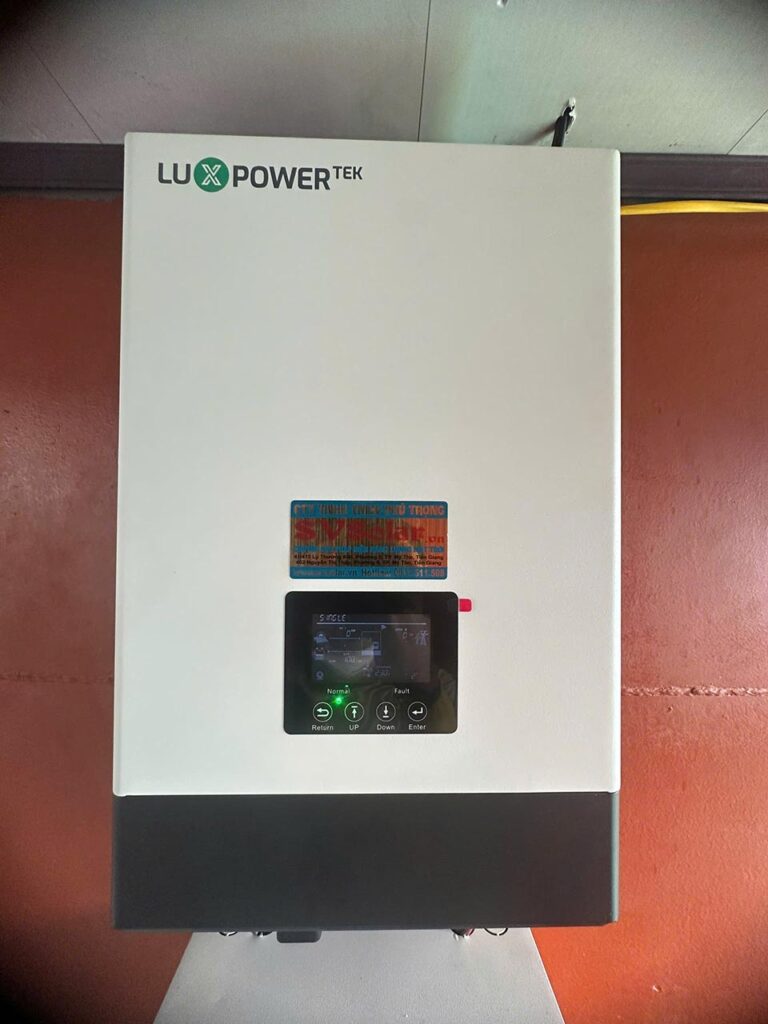 4 tấm pin 580w hiệu suất cao . Các tấm pin được bố trí trên mái tàu, đảm bảo tối ưu diện tích và khả năng hấp thụ ánh sáng mặt trời. - Inverter LuxPower 5kW:
