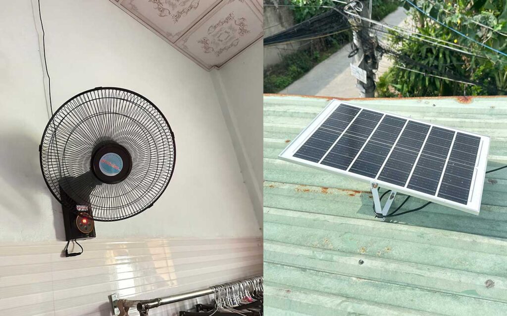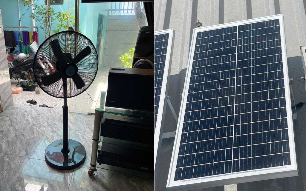 “Mình dùng quạt đứng công nghiệp của SV Solar ngoài hiên buổi chiều, vừa mát cho khách, vừa không tốn điện. Có hôm mất điện, khách vẫn tới ngồi mát nhờ quạt chạy bằng pin mặt trời. Rất tiện.”