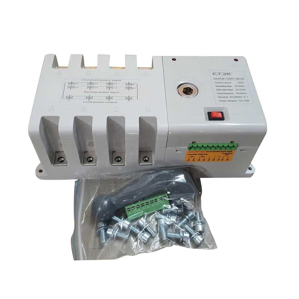 ETEK 125A 4P EKATS8-125PC-40125 là thiết bị chuyển mạch tự động chuyển đổi nguồn điện giữa điện lưới và máy phát hoặc giữa hai nguồn điện khác nhau. Sản phẩm được thiết kế chuyên dụng cho các hệ thống điện dự phòng, giúp đảm bảo nguồn cấp ổn định, liên tục cho tải, đặc biệt trong các khu vực cần độ tin cậy cao như: nhà máy, văn phòng, biệt thự, trung tâm dữ liệu, hệ thống năng lượng mặt trời…
