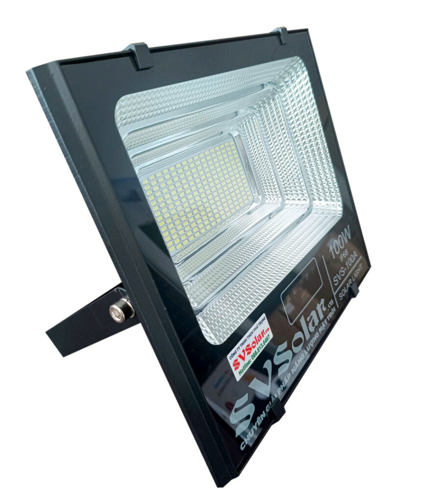 Đèn pha SVSolar 100w IP68 mẫu mới sáng xuyên đêm là đèn chiếu sáng sử dụng năng lượng mặt trời để chuyển hóa quang năng của ánh sáng mặt trời thành điện năng để cung cấp cho hệ thống đèn chiếu sáng trong nhà, ngoài trời như đường phố, lối đi, khu đô thị, sân cổng, sân vườn, công viên, đường giao thông, sân chơi thể thao, trang trại, vùng sâu vùng xa.