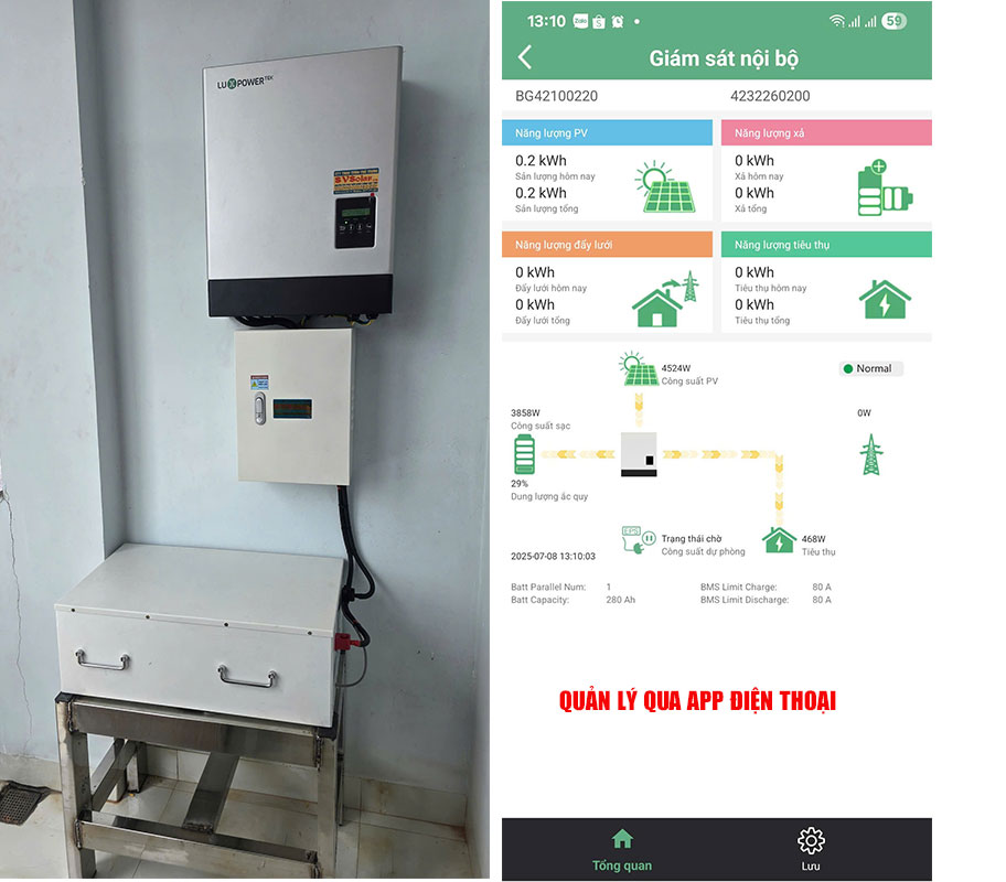 ✅ Chủ động nguồn điện: Nhờ pin lưu trữ Lithium SVS280, gia đình hoàn toàn yên tâm sử dụng điện trong những lúc mất điện lưới.