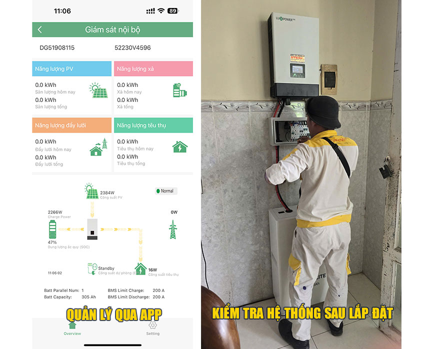 Chủ động nguồn điện: Nhờ có pin lưu trữ Lithium dung lượng lớn, gia đình hoàn toàn yên tâm sử dụng điện cả khi mất điện lưới.