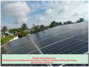 Hệ thống bộ hoà lưới điện mặt trời 10Kwp 24 tấm pin Canadian 440Kw Năm...